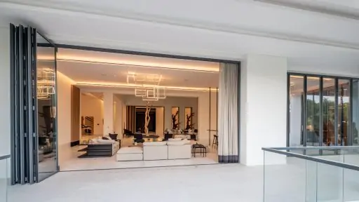 Minimalistische Aluminium-Falttüren eignen sich perfekt, um offene Räume abzuschließen oder Innenräume zu trennen.